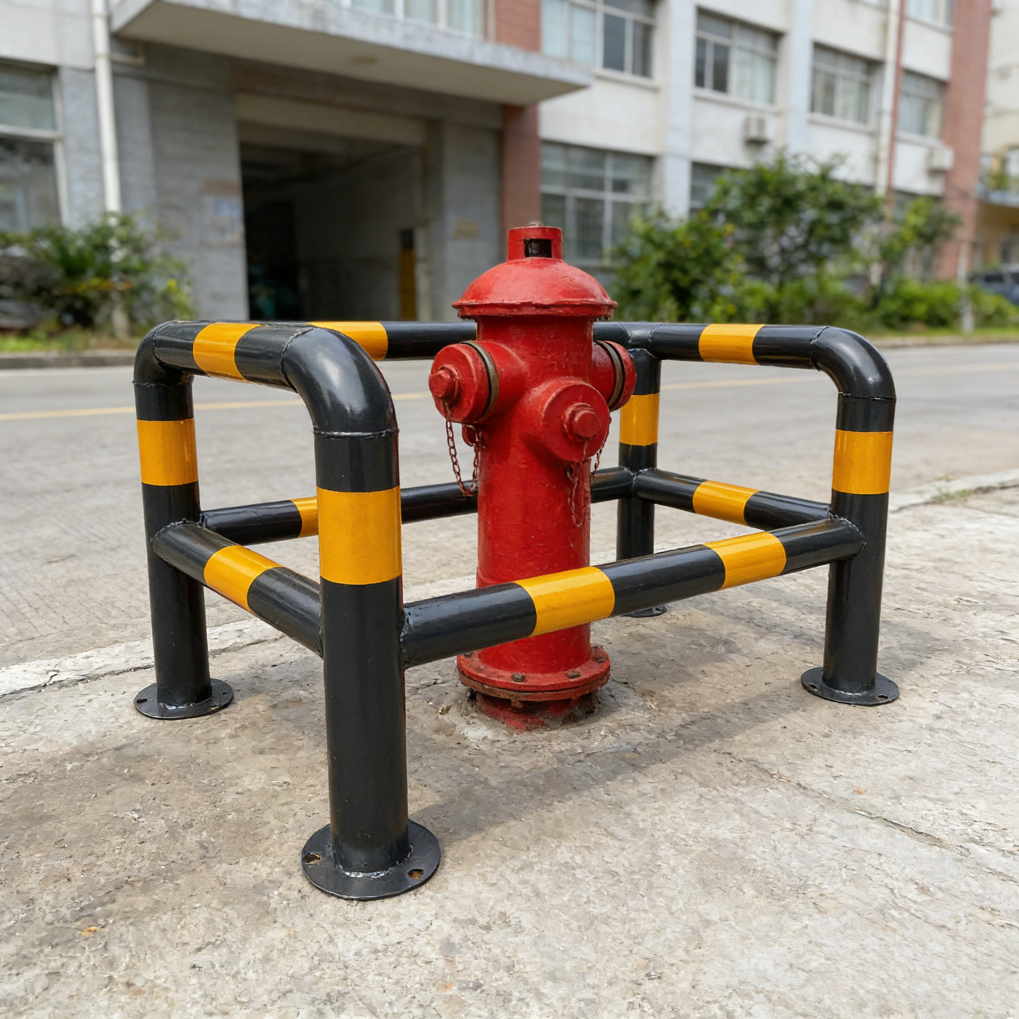 Square-Frame Steel Pipe Guardrail Is Made Of High-Quality Q235/Q355 Carbon Steel By Integrated Welding, Presenting A Standard Square Frame Structure. The Rail Diameter Is Optional 48mm/60mm, Wall Thickness 3-5mm, With Solid Structure And No Deformation. It Can Effectively Resist Vehicle Impact And External Collision, Providing Full-Wrap Protection For Fire Hydrants And Mechanical Equipment. The Surface Is Treated By High-Temperature Electrostatic Powder Coating, With Optional Hot-Dip Galvanizing Process, Featuring Excellent Acid And Alkali Resistance, UV Resistance, Anti-Corrosion And Anti-Rust Performance, And Outdoor Service Life Up To 8-10 Years. Equipped With Thickened Fixed Flange At The Bottom, Firmly Connected To The Ground By Expansion Bolts, The Protection Level Is Adapted To Complex Outdoor Environments. It Supports Customizing Opening Size And Rail Height According To Fire Hydrant And Equipment Dimensions, Accurately Meeting Protection Needs And Balancing Protection And Operational Convenience.